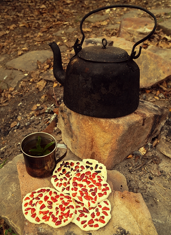 Wykonanie takich smakołyków, to nic skomplikowanego. W ciasto (mąka, woda, odrobina cukru) wgniatamy oczyszczone i rozdrobnione owoce, a następnie pieczemy je na rozgrzanym kamieniu przy ognisku. Pyszne, czuć wyraźnie owocową słodyczą lekko skarmelizowanej róży. Podpłomyki najlepiej smakują podane z herbatą z dzikiej mięty zaparzonej z okopconego, starego czajnika :)